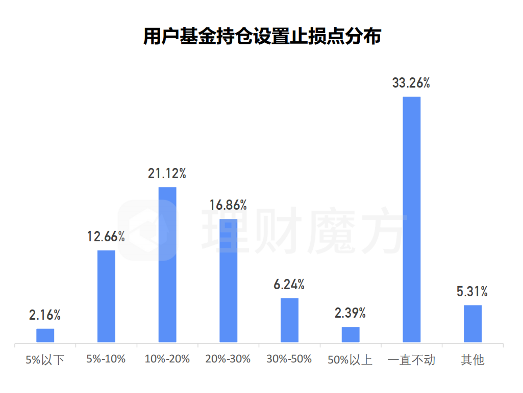 - 止损点的设置,一定程度上能降低基金投资风险。理财魔方调查发现,面对亏损,超三成基金投资者会放着一直不动,超两成在亏10~20个点时会止损。