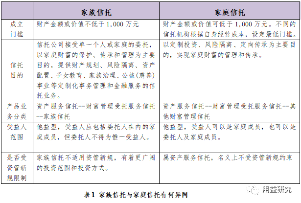 家庭信托除了未达到资管新规中的1000万资金门槛之外,基本符合资管新规中关于家族信托的全部定义。上述信托公司亦把他益安排作为家庭信托的显著特征。这源于无论是监管者还是实务操作者,都把是否是他益信托作为区分这类服务信托和传统的融资信托的重要标准。