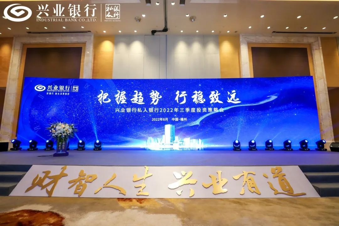 8月19日下午,兴业银行在福州举办“把握趋势 行稳致远”2022年三季度私人银行投资策略会,就新形势下全球经济趋势、金融政策走向以及金融市场投资等进行研讨,并正式发布《兴业银行私人银行2022年三季度金融市场分析与大类资产配置季度报告》。