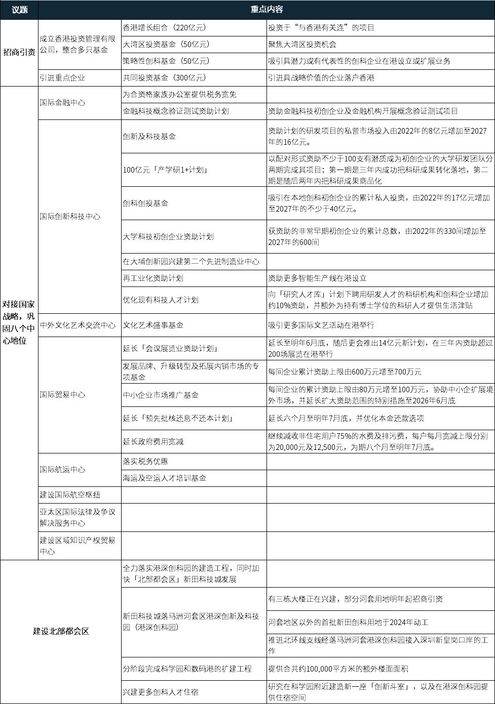 此前,我们解读了《施政报告》相关政策与措施中“抢企业”、“抢人才”的重点。上周我们又侧重分析香港吸纳高端、优秀人才的政策,及相关人才在香港的发展前景。本周,我们将继续关注《施政报告》中对企业的资助计划。
