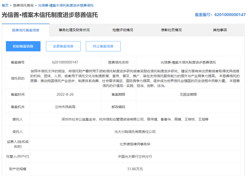 我国首单致力于鼓励信托制度进步研究的慈善信托落地