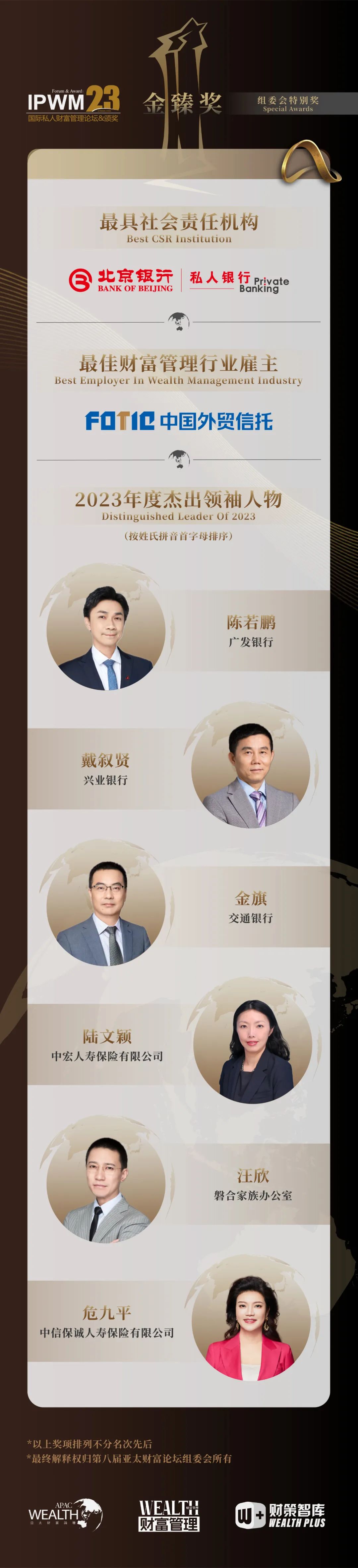 2023年度国际私人财富管理行业评选(即“金臻奖”)榜单,特此公示。