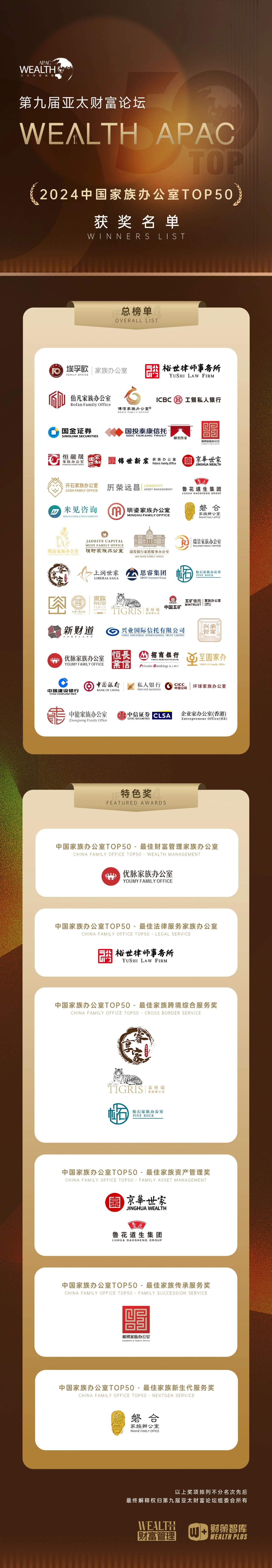 如下是2024年度中国家族办公室TOP50榜单,特此公示。