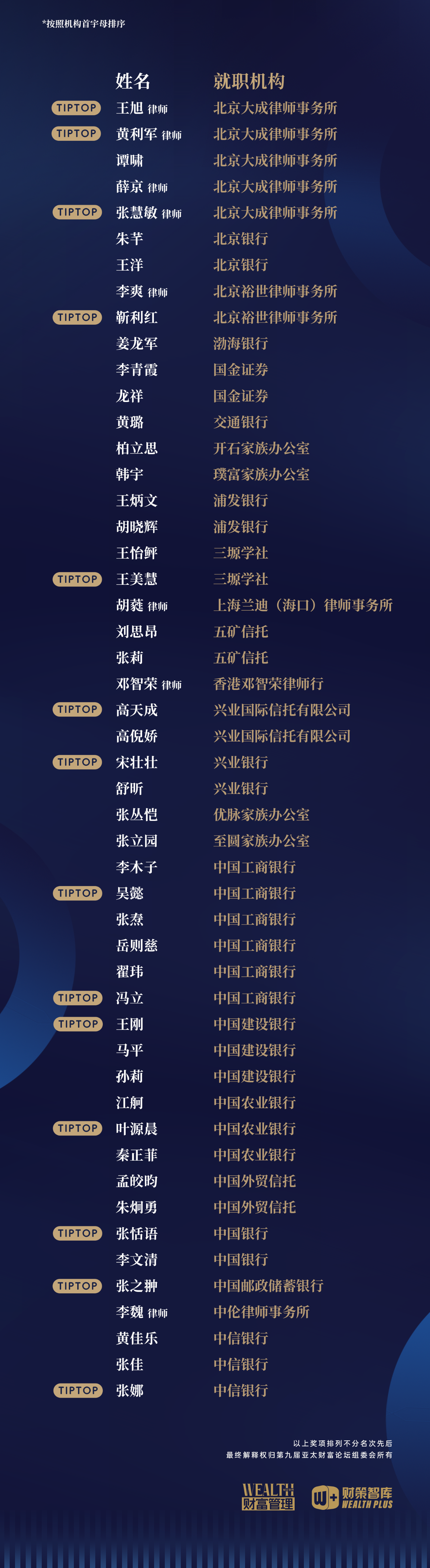 TIPTOP顶级顾问名单如下: