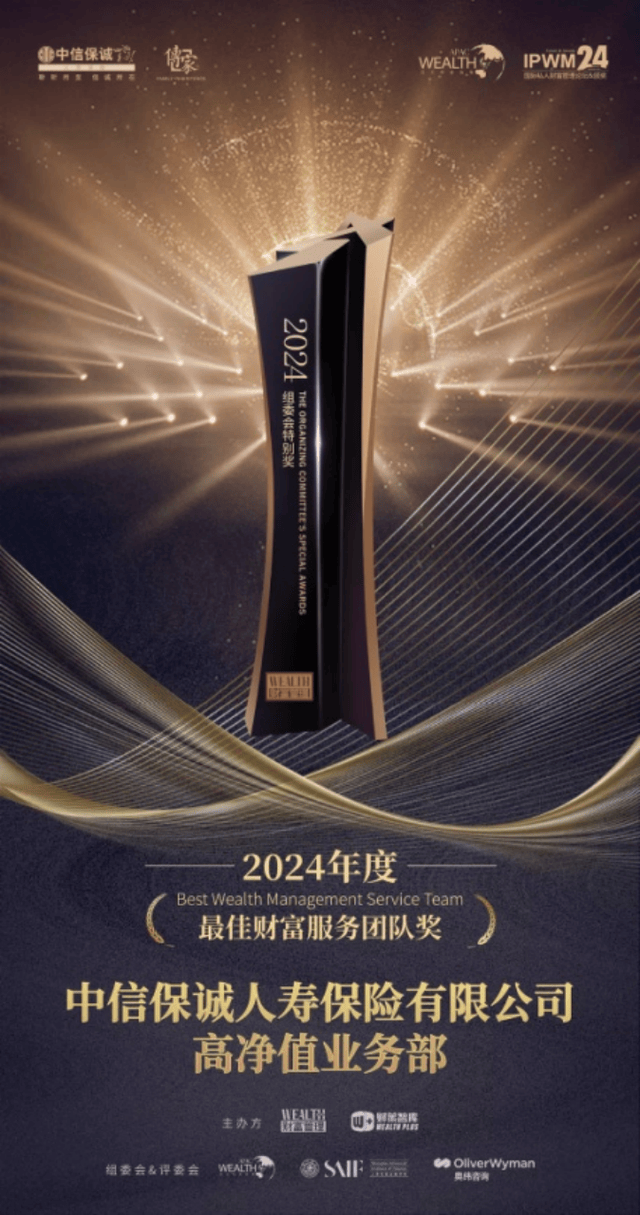 中信保诚人寿能够连续四年获得“金臻奖”,得益于其完善的内控和公司治理机制、优异的市场表现,以及杰出的专业化运作。中信保诚人寿在财富管理领域的卓越表现,不仅赢得了业界的广泛认可,更为客户提供了专业、全面、个性化的服务。作为一家深耕高净值领域的保险公司,中信保诚人寿始终致力于为客户提供以保险保障为核心的一站式财富传承服务,帮助客户实现财富的保值增值、传承延续