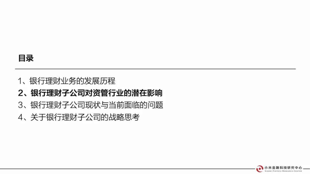 银行理财子公司作为新的资管机构,在产品形式、投向、销售方式和起点上与过去银行理财业务相比均有较大的放松。理财子公司对资管行业未来将产生一系列潜在影响: