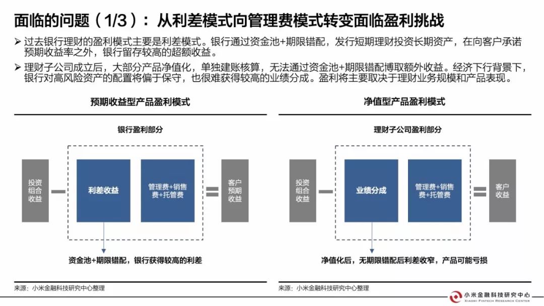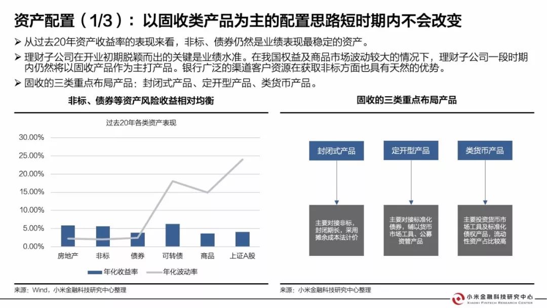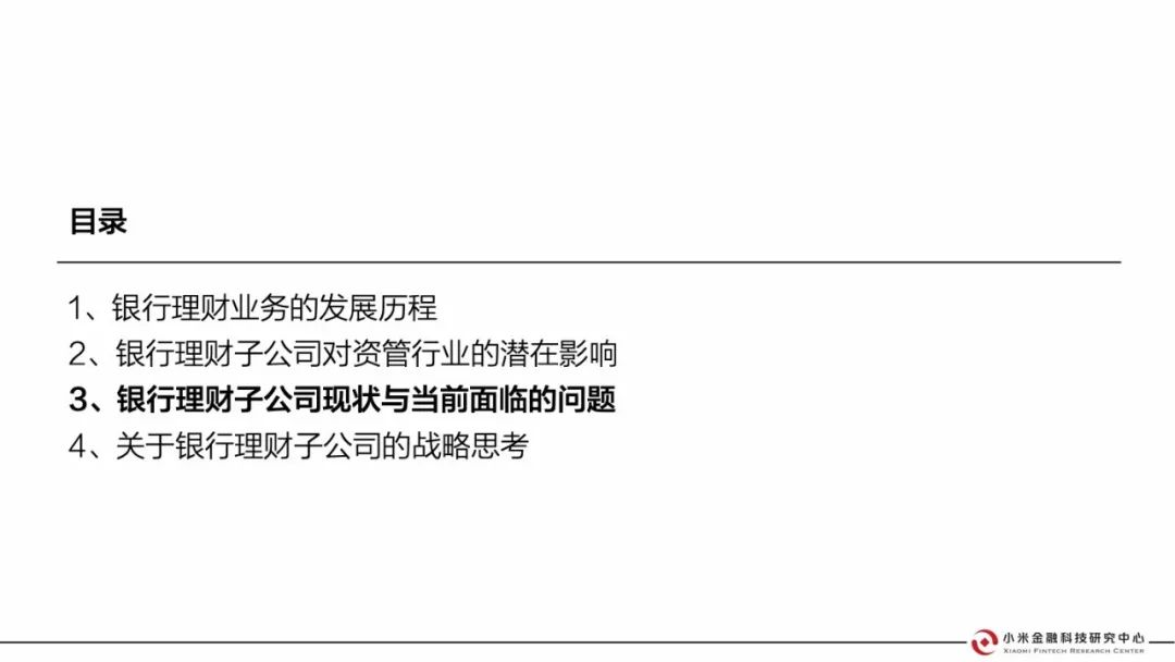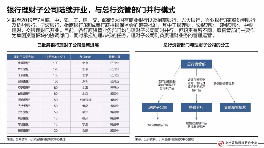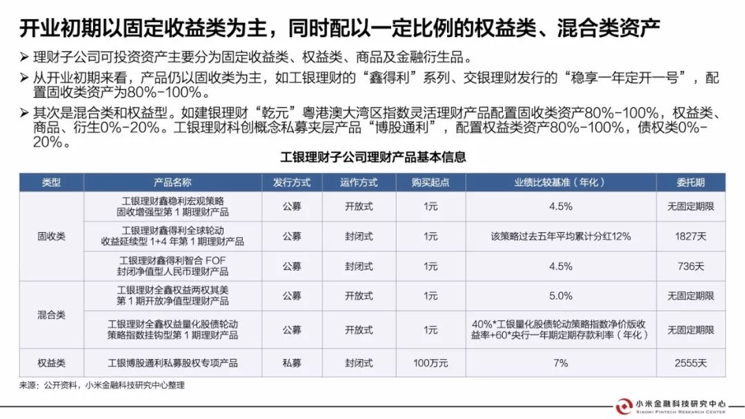 目前已有12家银行理财子公司获批,工、农、中、建、交已开业。各行原资管业务部门与理财子公司并行运作,但职责分工有所不同;均发行了理财产品,主要以固收类为主,混合类、权益类为辅。但目前还面临一些问题: