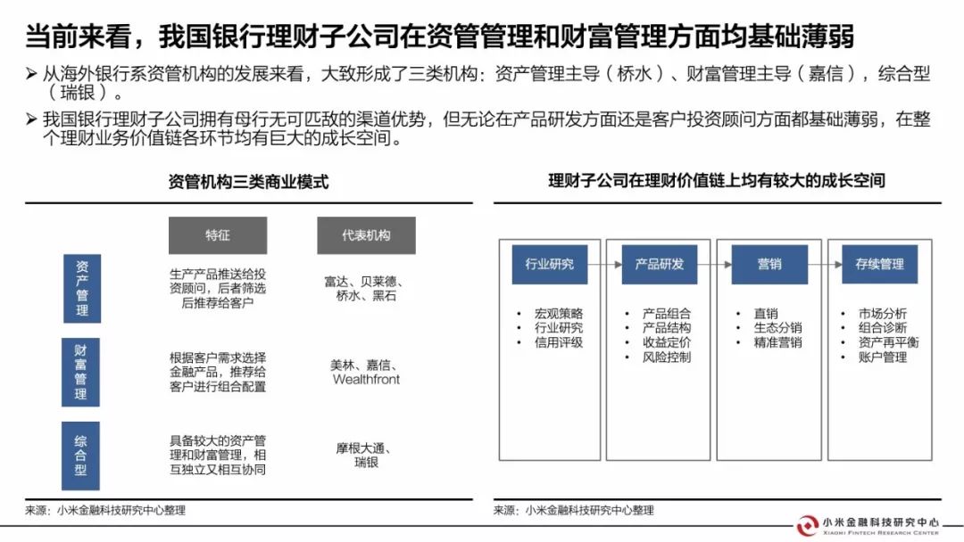 虽然当前理财子公司基础薄弱,但对比海外银行资管机构,我们认为理财子公司未来发展空间广阔。当下银行理财子公司可以从以下几方面发力: