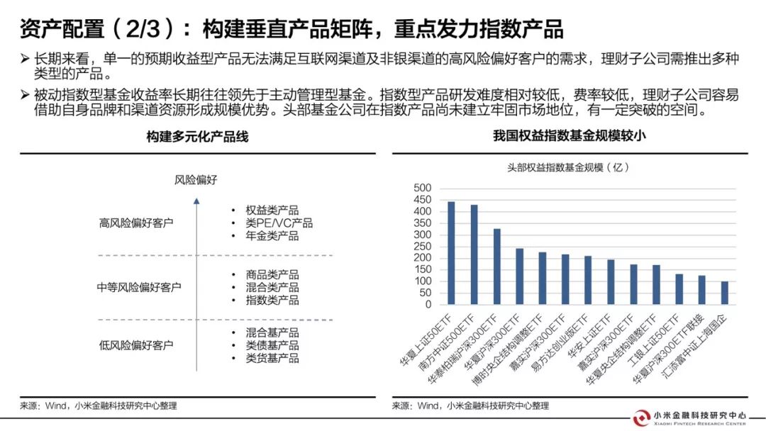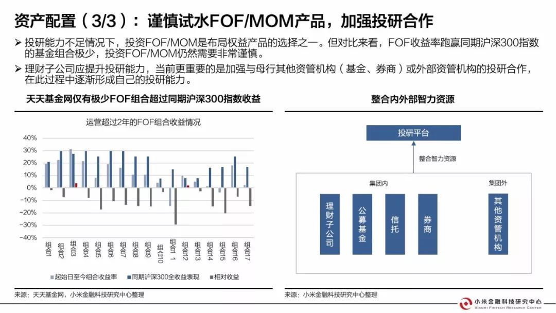 - 资产配置上坚持固收为主的策略,重点发力指数产品、谨慎试水FOF/MOM